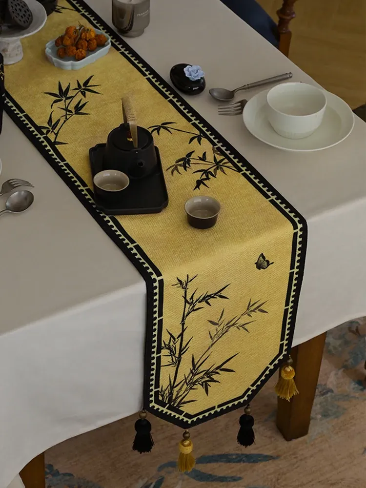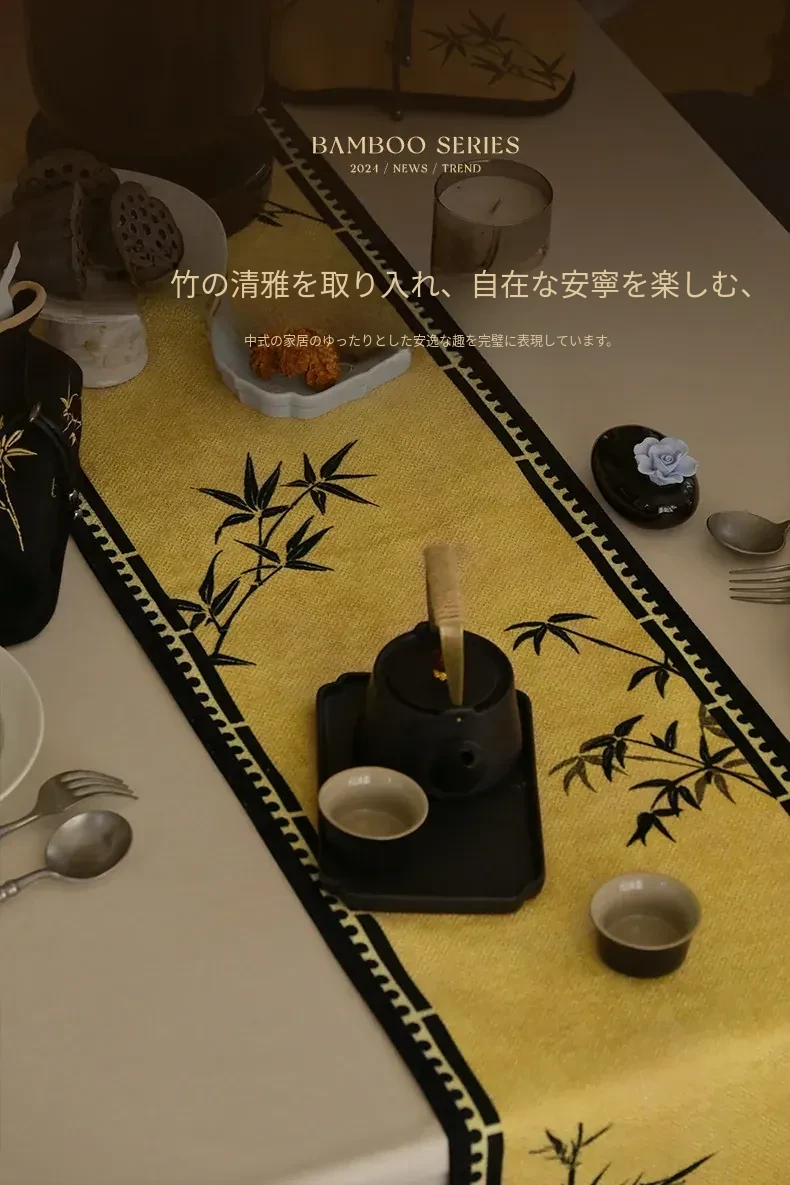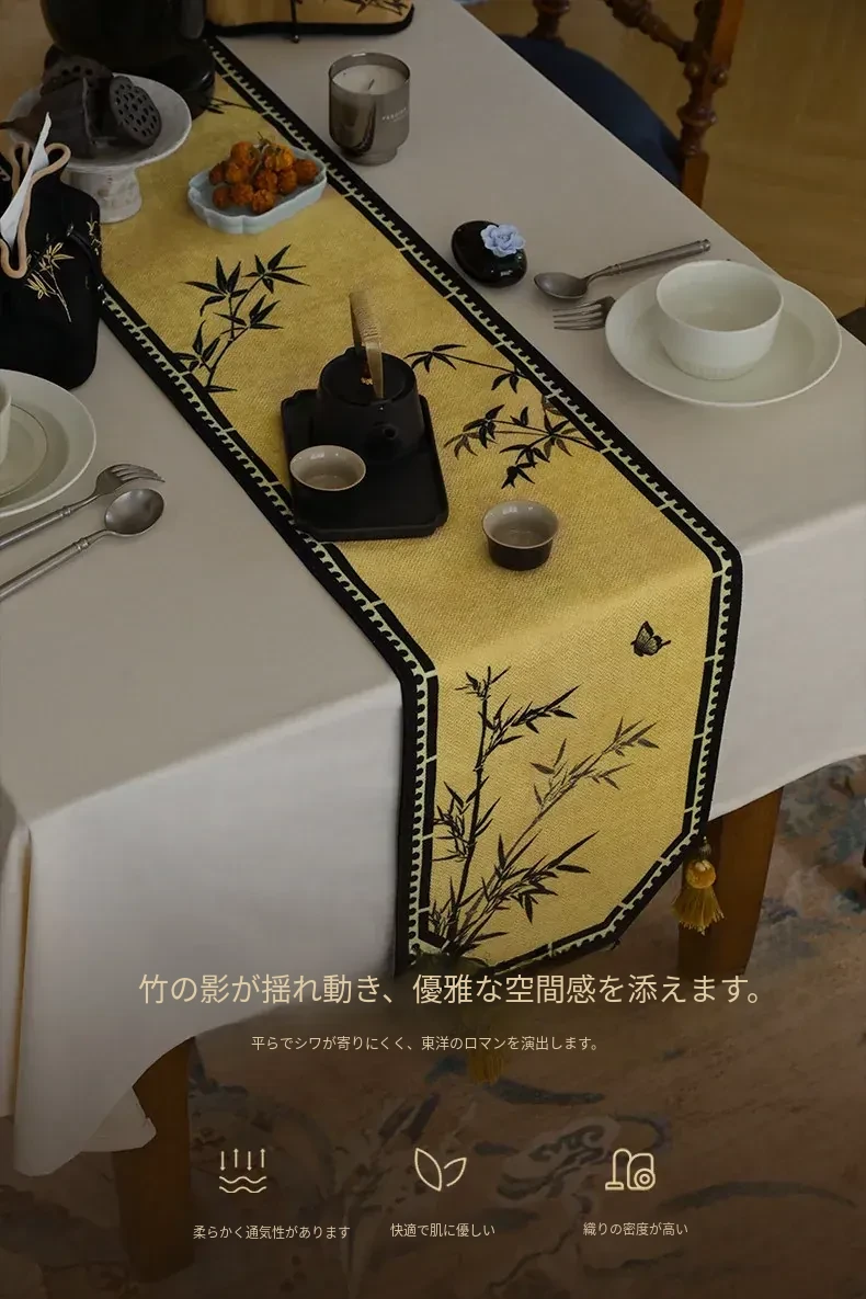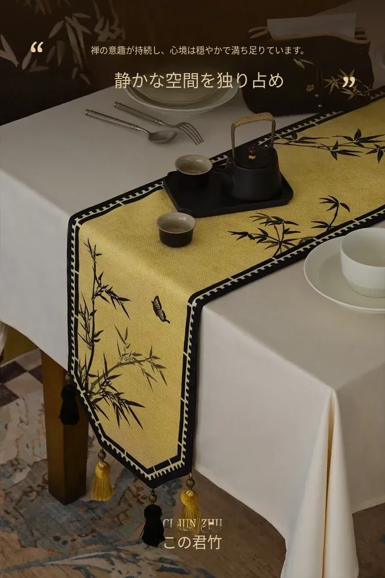 中華風禅のテーブルランナー - 高級感溢れるモダンデザインで、茶卓やダイニングテーブル、テレビ台、玄関のインテリアを引き立てる!宋代美学が息づく、魅惑の長方形装飾カバー。