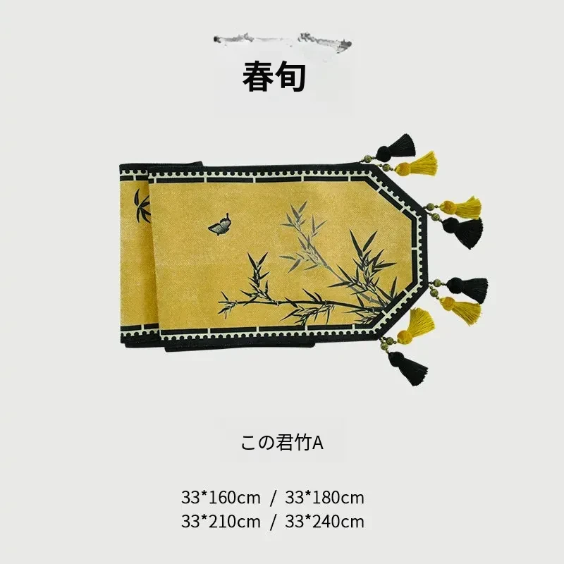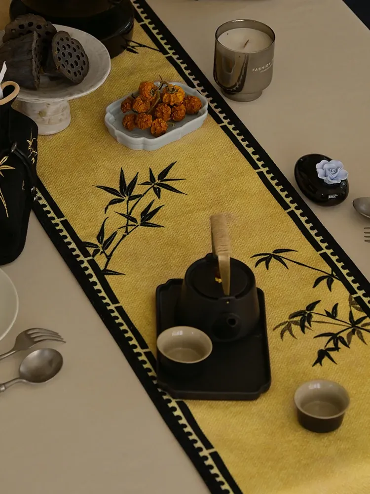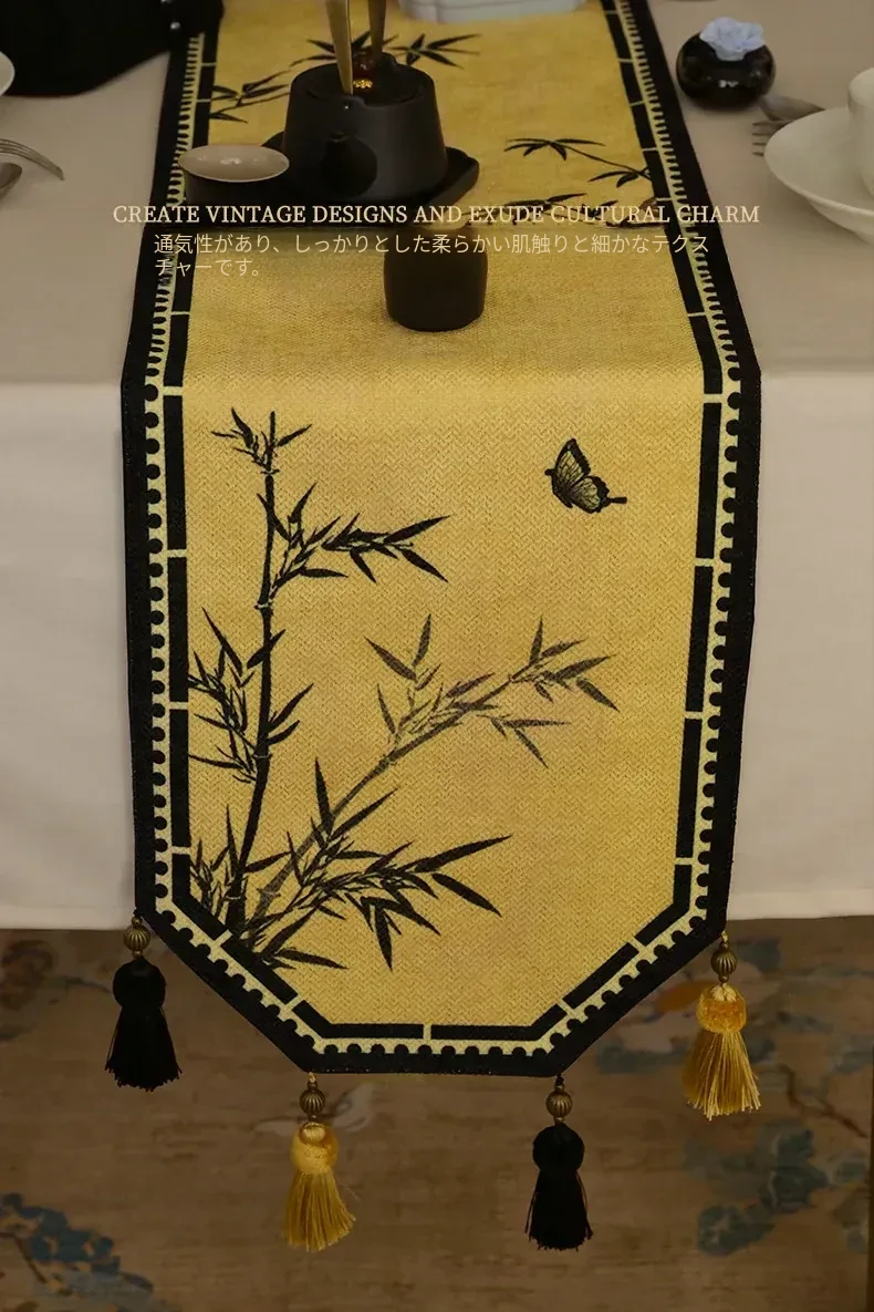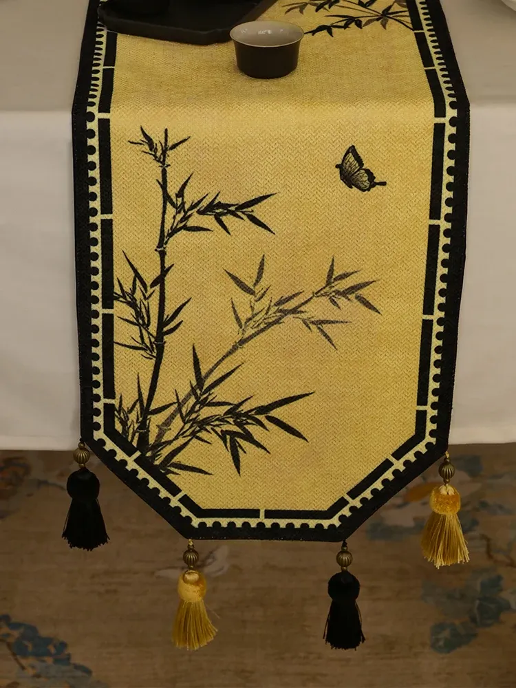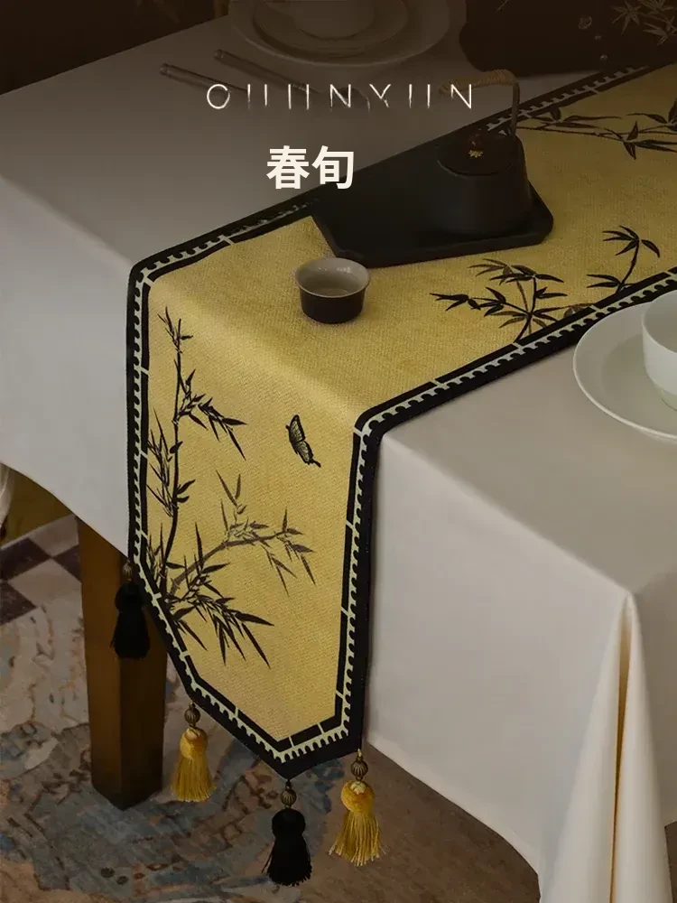 中華風禅のテーブルランナー - 高級感溢れるモダンデザインで、茶卓やダイニングテーブル、テレビ台、玄関のインテリアを引き立てる!宋代美学が息づく、魅惑の長方形装飾カバー。