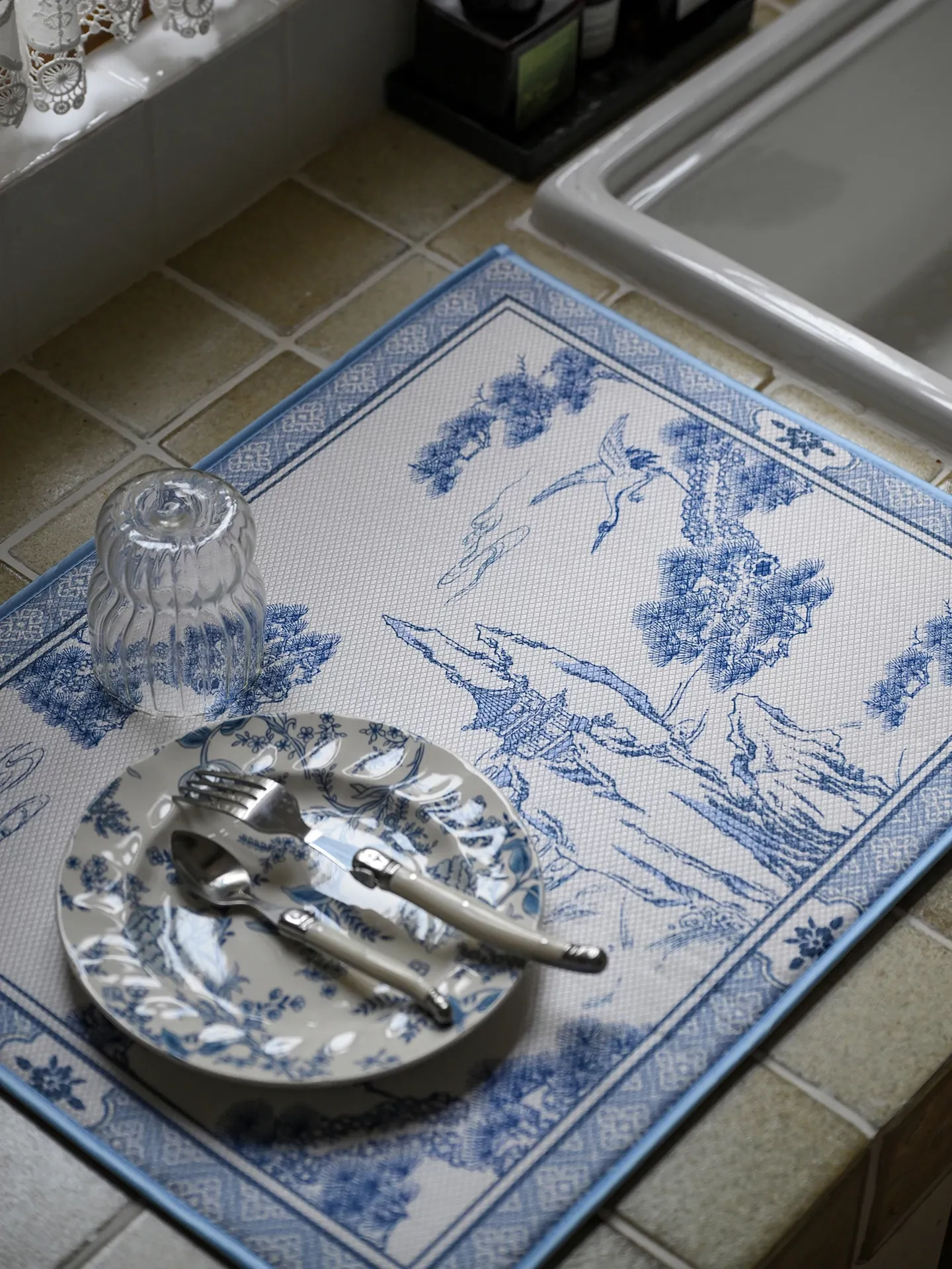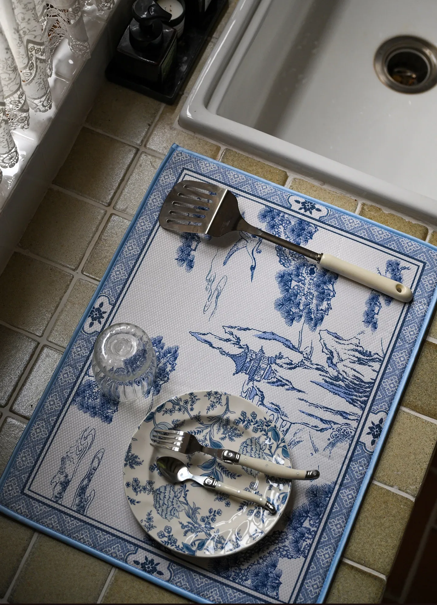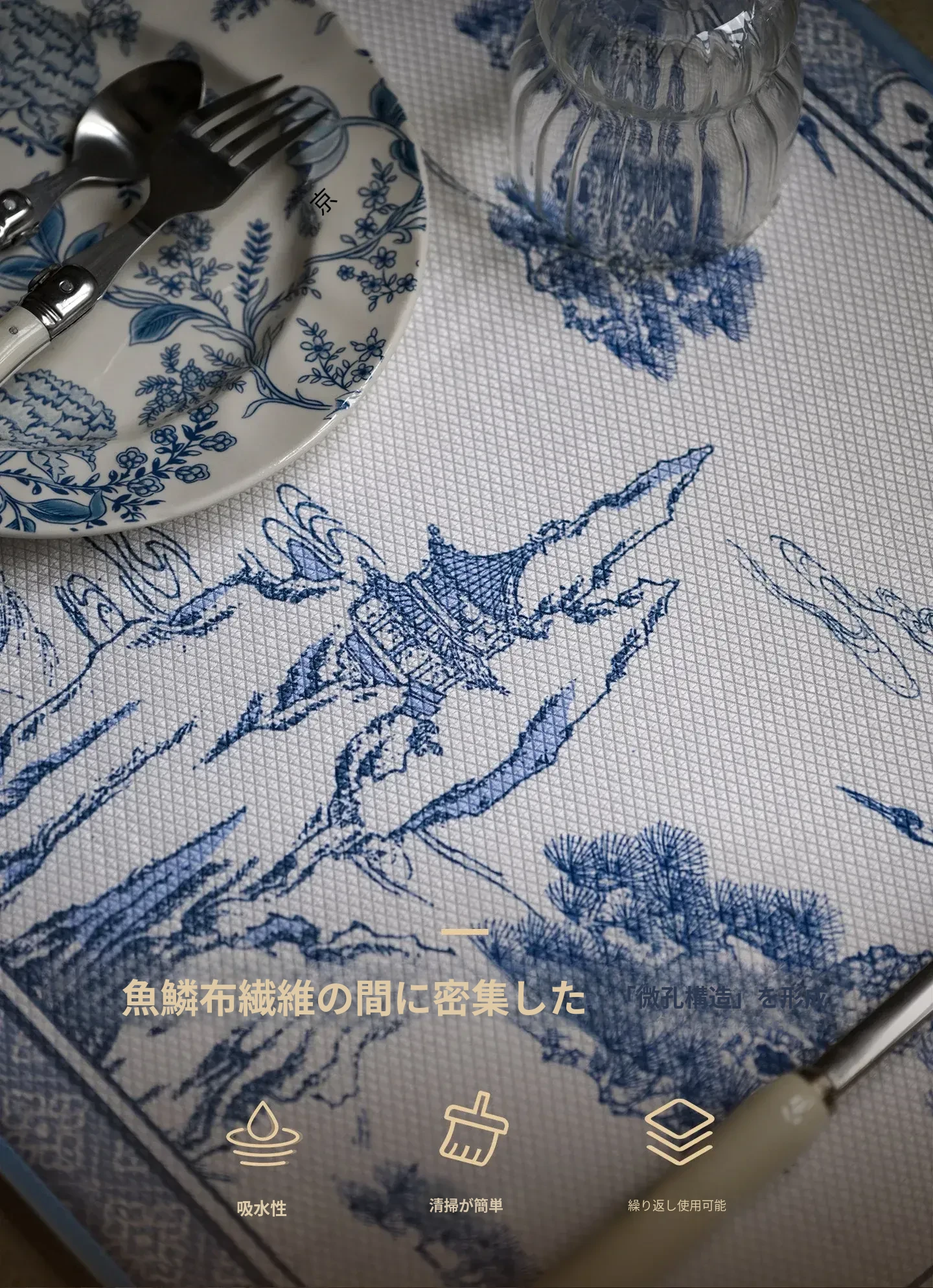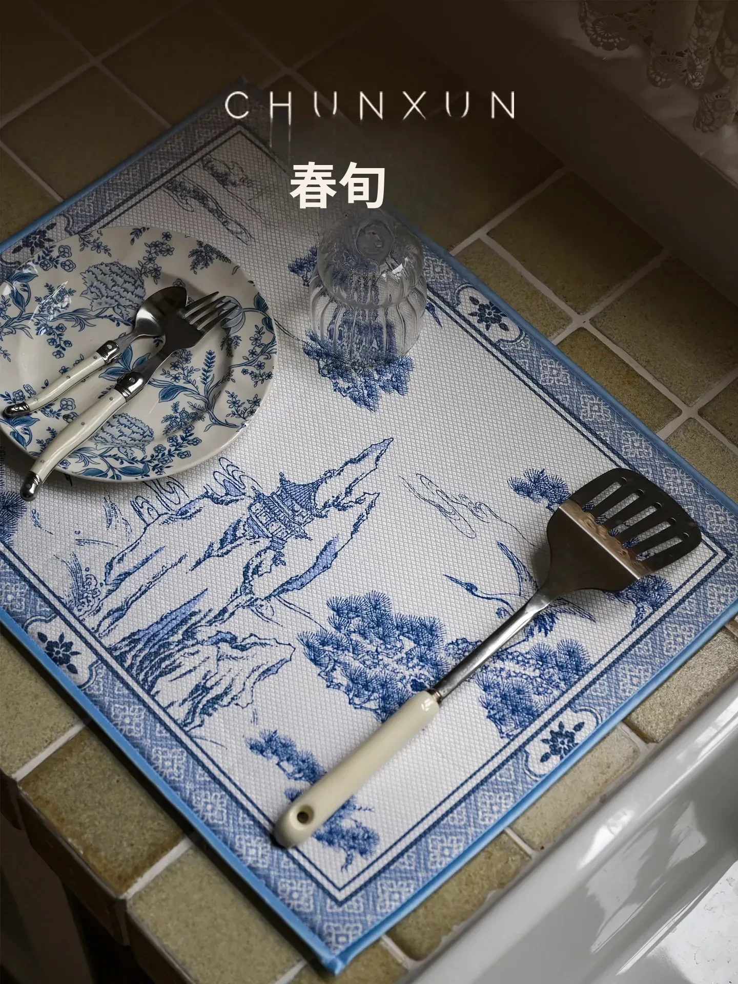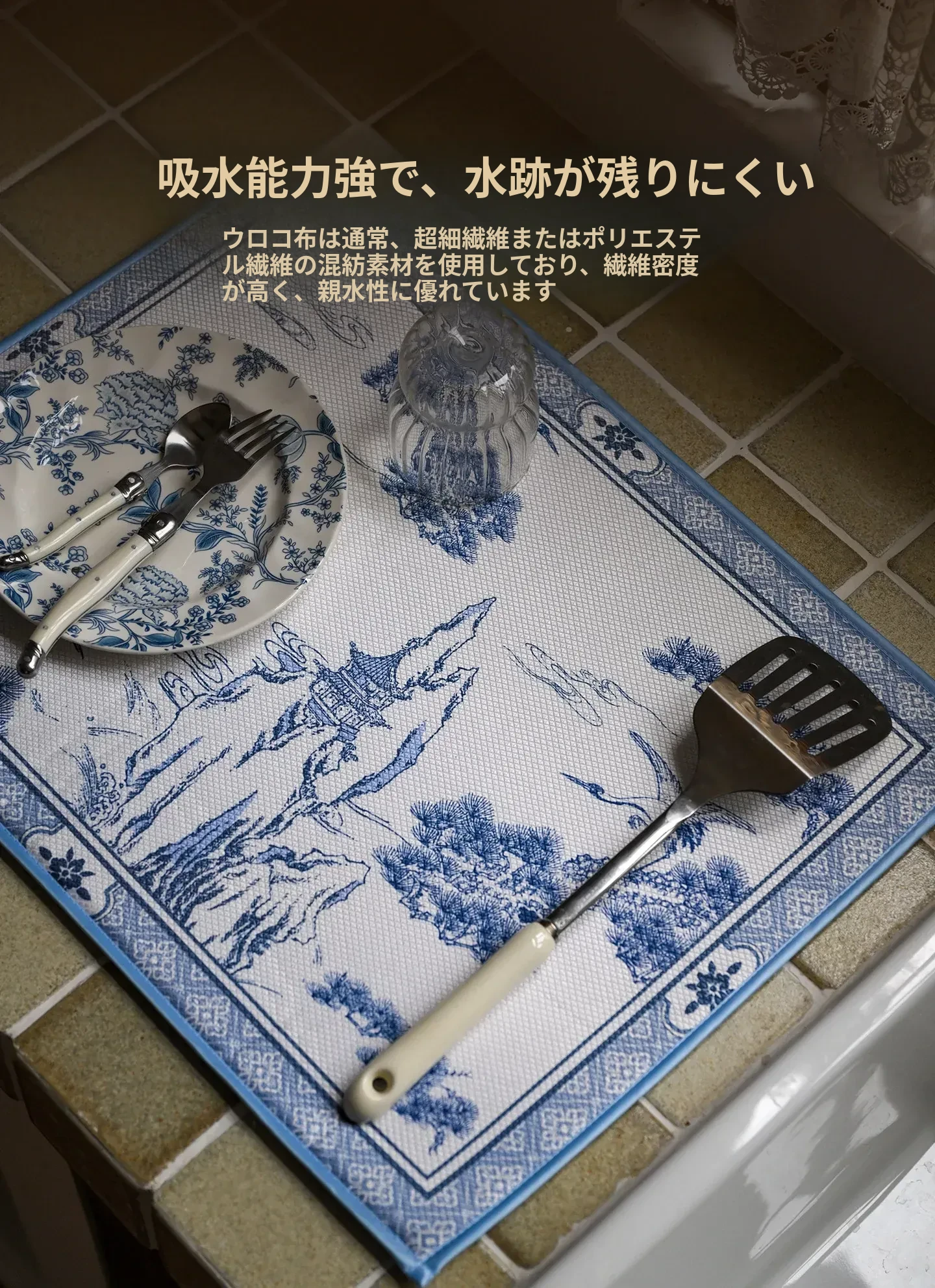 春の新作!中華風キッチン用速乾吸水マット - カウンター、洗面台、ダイニングに最適な吸水・耐熱マットで、清潔で便利なキッチン環境を実現!